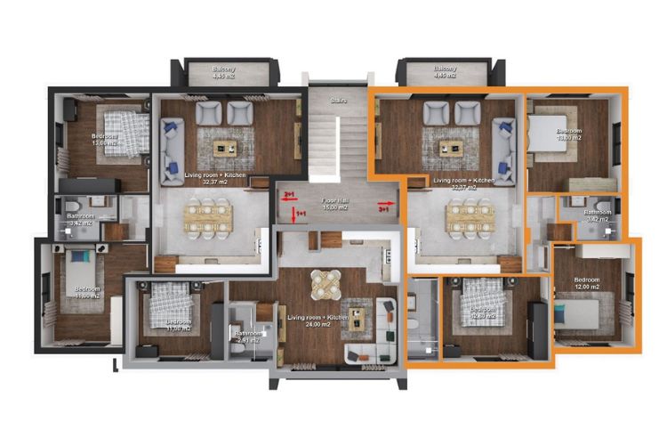 Her blokta 1+1 , 2+1, 3+1 olacak şekilde toplam 9 adet daire olarak 3 Katlıdır.