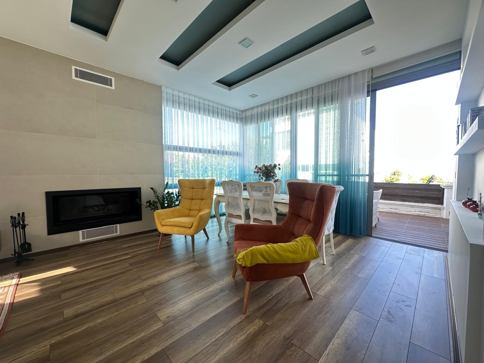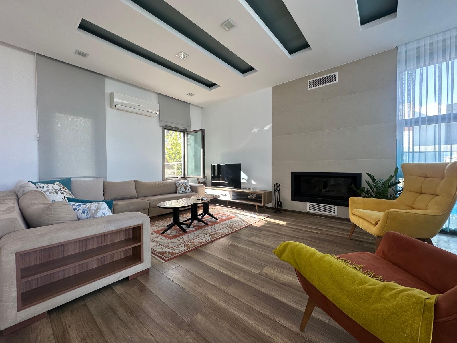Şömineli Salon ve Kapalı Plan Mutfak