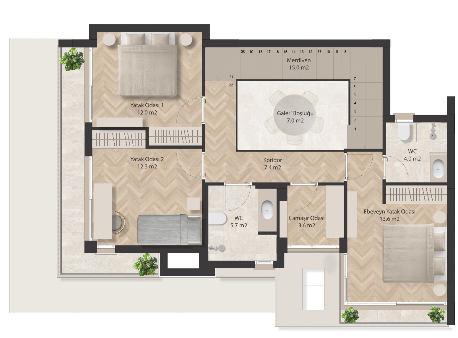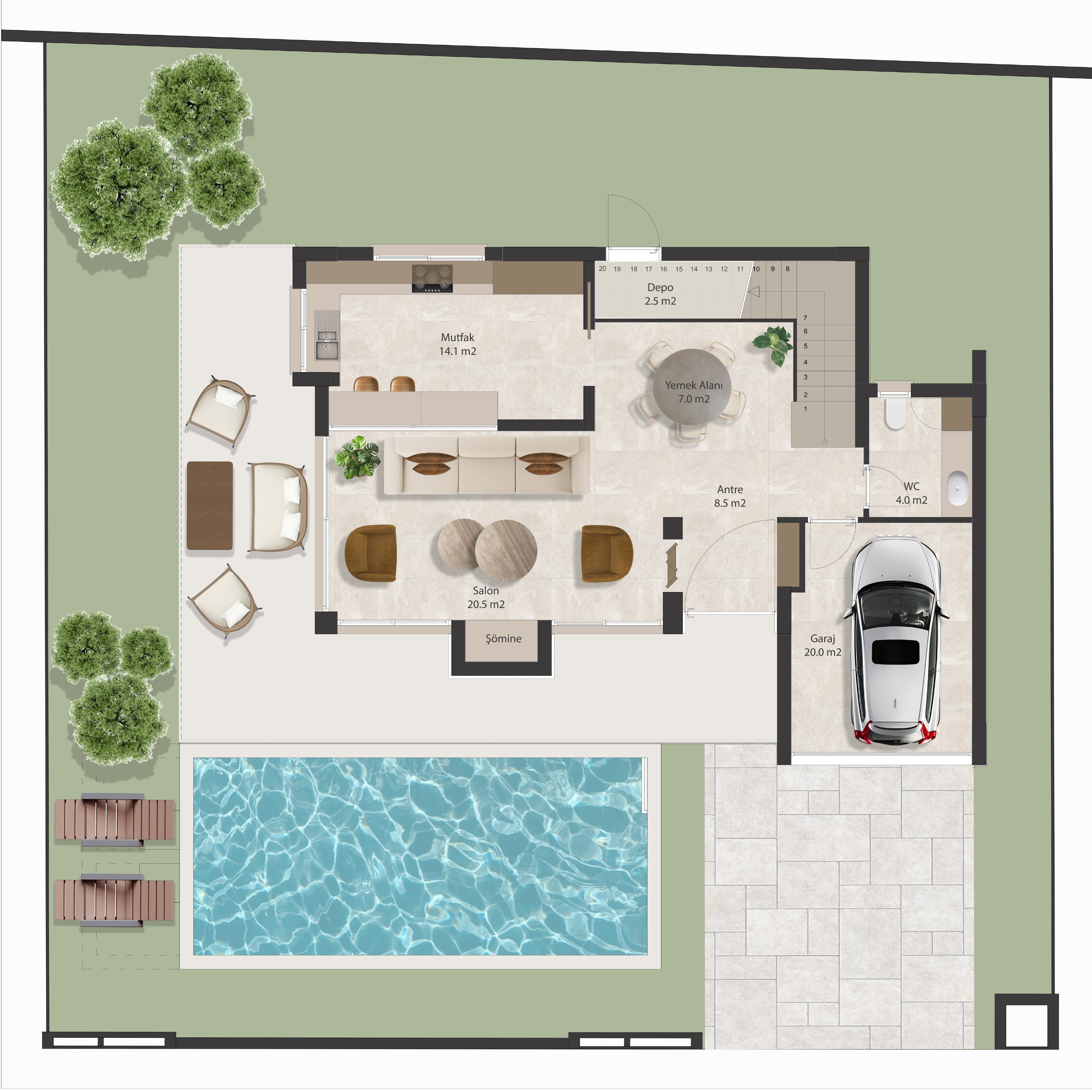 Yaşam Alanı: 225 m²