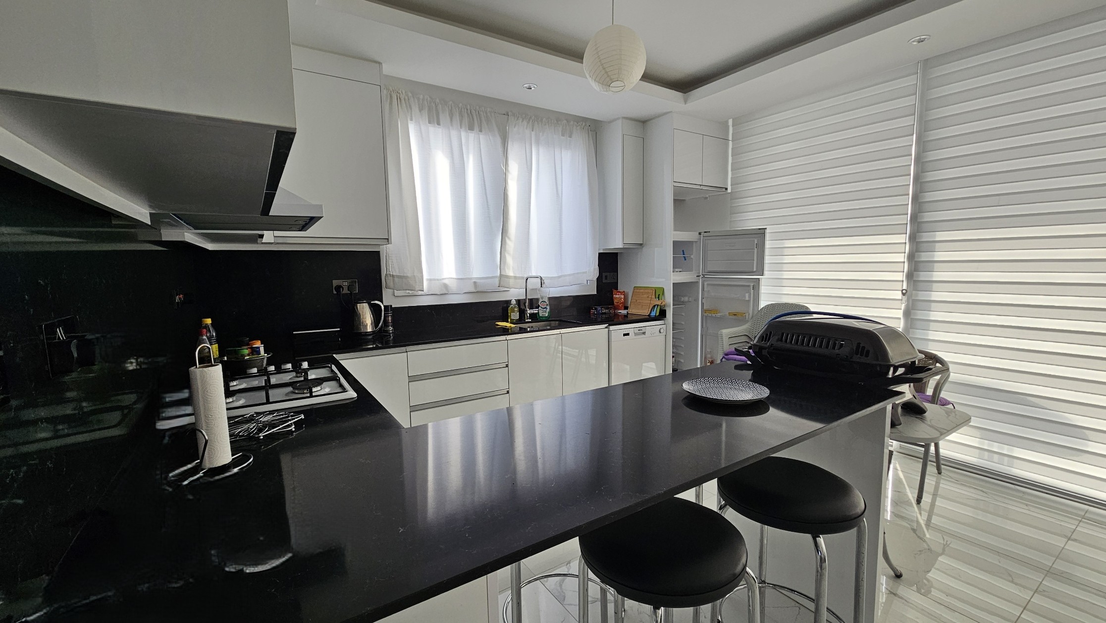 Daire full eşyalı, ferah balkonlu ve deniz manzaralıdır.