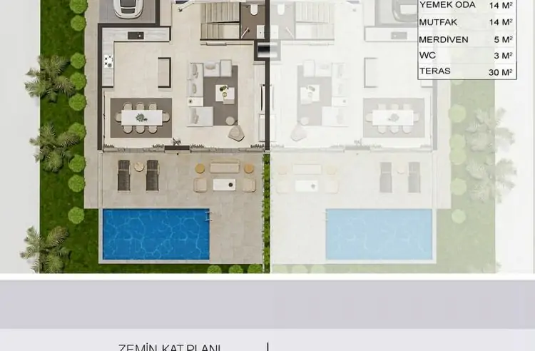 BRÜT: 195m²             ARSA: 250m²              HAVUZ: 18m²