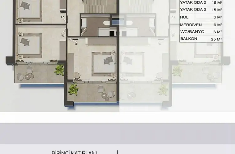 • Yatak Odaları: 3